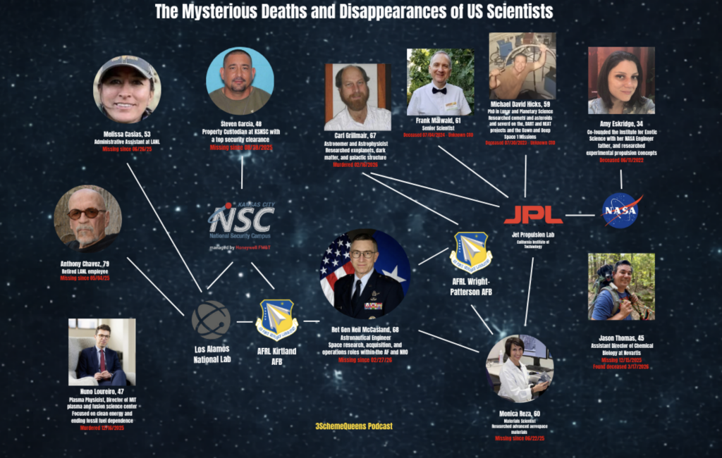 A few weeks ago, we told you about the strange connection between missing and dead scientists in the United States. The researchers all had ties to aerospace, nuclear science, and advanced technology. Since that episode, the number has grown. Some missing. Some dead. All connected, at least on the surface, to some of the most sensitive research in the United States. Today we’re going to update you on the more recent connected cases, and give you overall updates on the investigations.